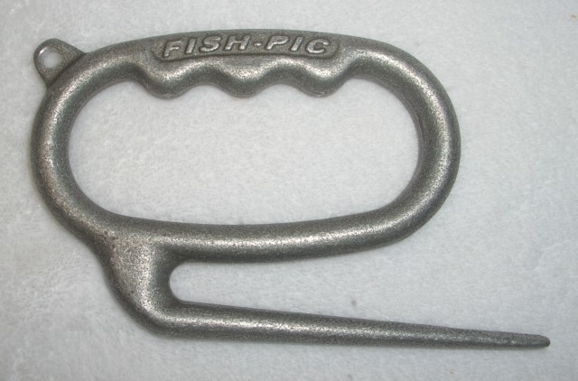 Once landed, insert the "pic" through the rear of the gill and out the mouth. Easily stabilizes fish for hook removal and moving to holding box. Helps protect hands and fingers from sharp teeth. Made from heavy duty cast aluminum.